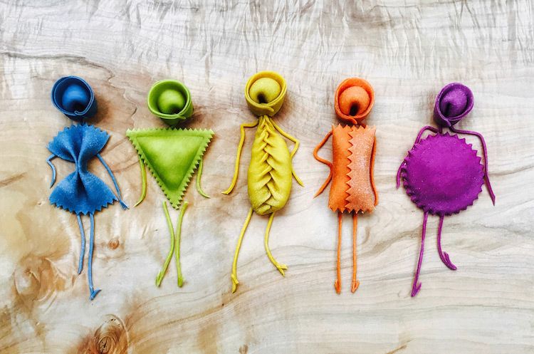 با این حساب نباید تعجب کرد که چطور طبخ پاستا، ماکارونی یا حتی راویولیهای رنگارنگ در کنار طعم و مزه، چشمان ما را نیز مهمان دنیایی جادویی میکند. برای مدتها ما پاستا را در سادهترین شکل خود دیدیم، رفته رفته ماکارونیهای شکل دار به سبد غذایی خانواده اضافه شد و کم کم پای انواع رنگی و طعم دار آنها نیز به سفرههای ما باز شد. این محدوده رنگی محدود بود و به چند رنگ ساده مثل قرمز به عنوان نماد گوجه فرنگی و سبز به عنوان نماد اسفناج محدود شد. اما از آنجایی که انواع پاستا، ماکارونی و حتی راویولی میتوان به صورت دستی و در منزل هم تهیه کرد، افراد خلاق دست به کار شده و رفته رفته رنگهای بیشتری را برای تهیه انواع غذاهای تهیه شده از این مواد تهیه کردند.